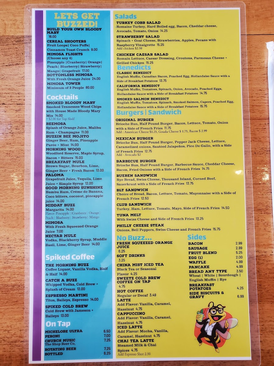 To complete the experience, the beverage menu covers both comfort and refreshment, from Latte, Hot Coffee, and Cold Brew to Fresh Squeezed Orange Juice, along with classic Soft Drinks, Lemonade, and Iced Tea. Overall, Cafe Morning Buzz’s menu feels thoughtfully designed, approachable, and versatile, making it a solid choice for breakfast, brunch, or lunch in one relaxed setting.